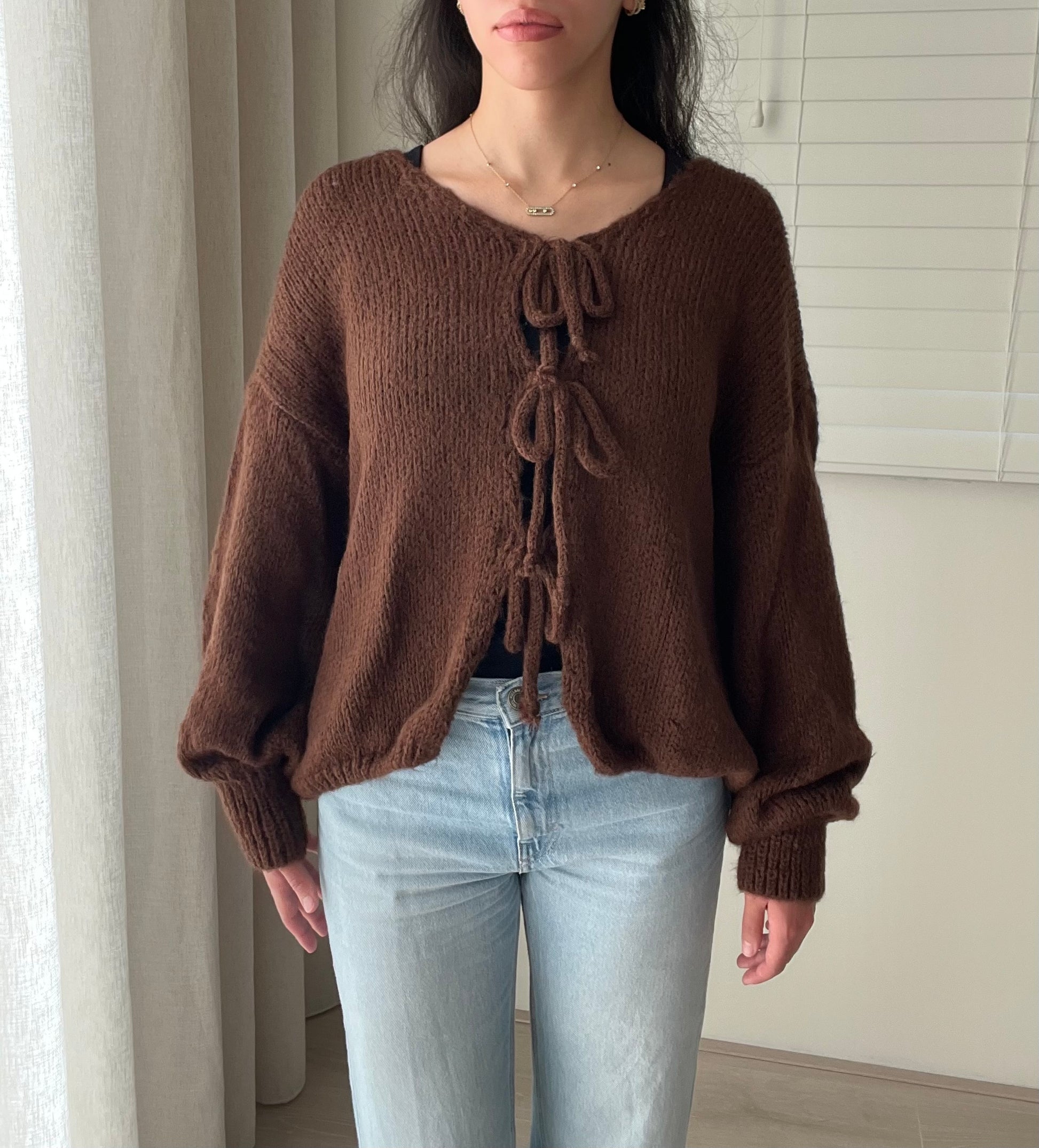 This elegant midi Chairo (Brouwn) vest features three delicate front ties, adding a charming and feminine touch. Perfect to layer over an abaya, a dress, or a skirt for a chic, effortless look.